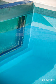 Mi color favorito, el blanco. Al reflejar un día soleado en una piscina con gresite blanco, conseguimos el color de las playas del caribe. No es tan bonito en días nublados…